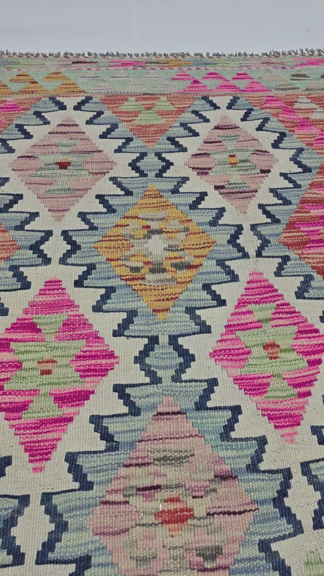 Deze traditionele, handgeweven kelim uit Afghanistan is met zorg door ons geselecteerd op zowel kwaliteit als design. Afghaanse kelims staan bekend om hun levendige kleuren, verfijnde patronen en hoge kwaliteit. Elk vloerkleed wordt met de hand vervaardigd door ervaren ambachtslieden, die eeuwenoude weeftechnieken van generatie op generatie doorgeven. Breng warmte, karakter en cultuur in je interieur met deze authentieke en tijdloze kelim.