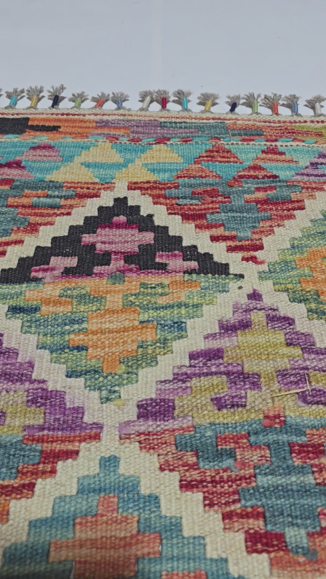 Deze traditionele, handgeweven kelim uit Afghanistan is met zorg door ons geselecteerd op zowel kwaliteit als design. Afghaanse kelims staan bekend om hun levendige kleuren, verfijnde patronen en hoge kwaliteit. Elk vloerkleed wordt met de hand vervaardigd door ervaren ambachtslieden, die eeuwenoude weeftechnieken van generatie op generatie doorgeven. Breng warmte, karakter en cultuur in je interieur met deze authentieke en tijdloze kelim.