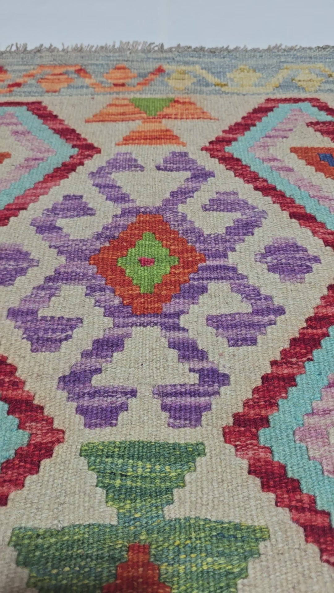 Deze traditionele, handgeweven kelim uit Afghanistan is met zorg door ons geselecteerd op zowel kwaliteit als design. Afghaanse kelims staan bekend om hun levendige kleuren, verfijnde patronen en hoge kwaliteit. Elk vloerkleed wordt met de hand vervaardigd door ervaren ambachtslieden, die eeuwenoude weeftechnieken van generatie op generatie doorgeven. Breng warmte, karakter en cultuur in je interieur met deze authentieke en tijdloze kelim.