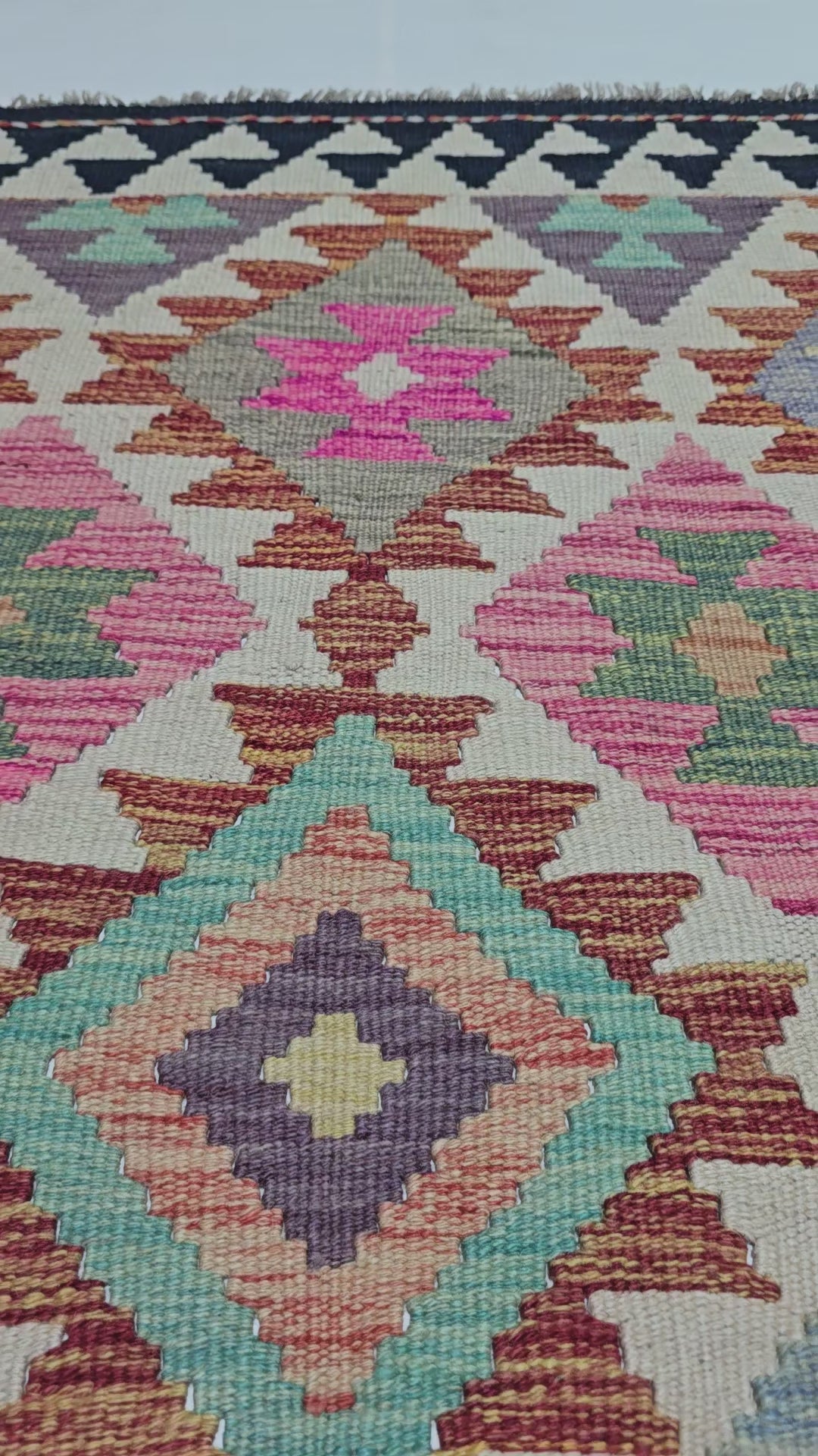 Deze traditionele, handgeweven kelim uit Afghanistan is met zorg door ons geselecteerd op zowel kwaliteit als design. Afghaanse kelims staan bekend om hun levendige kleuren, verfijnde patronen en hoge kwaliteit. Elk vloerkleed wordt met de hand vervaardigd door ervaren ambachtslieden, die eeuwenoude weeftechnieken van generatie op generatie doorgeven. Breng warmte, karakter en cultuur in je interieur met deze authentieke en tijdloze kelim.