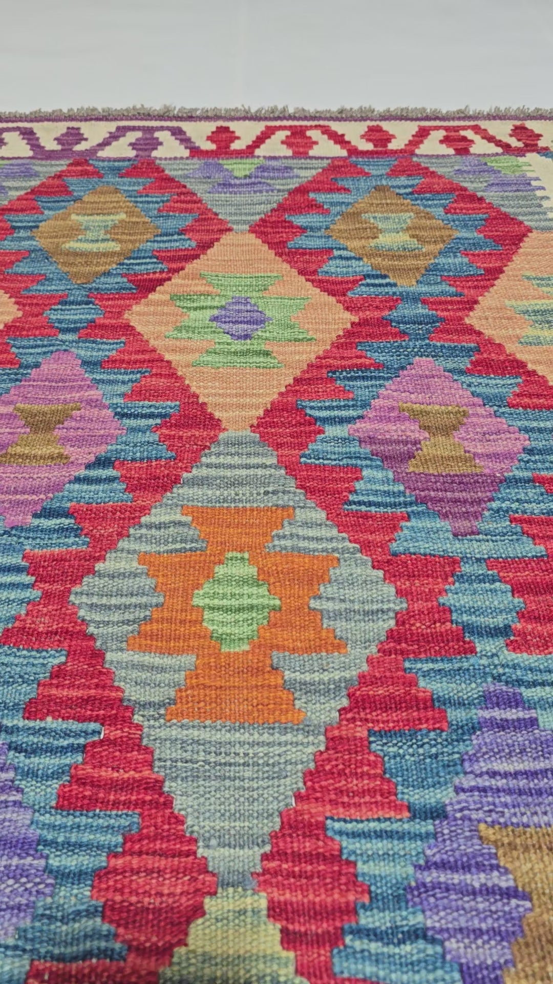 Deze traditionele, handgeweven kelim uit Afghanistan is met zorg door ons geselecteerd op zowel kwaliteit als design. Afghaanse kelims staan bekend om hun levendige kleuren, verfijnde patronen en hoge kwaliteit. Elk vloerkleed wordt met de hand vervaardigd door ervaren ambachtslieden, die eeuwenoude weeftechnieken van generatie op generatie doorgeven. Breng warmte, karakter en cultuur in je interieur met deze authentieke en tijdloze kelim.