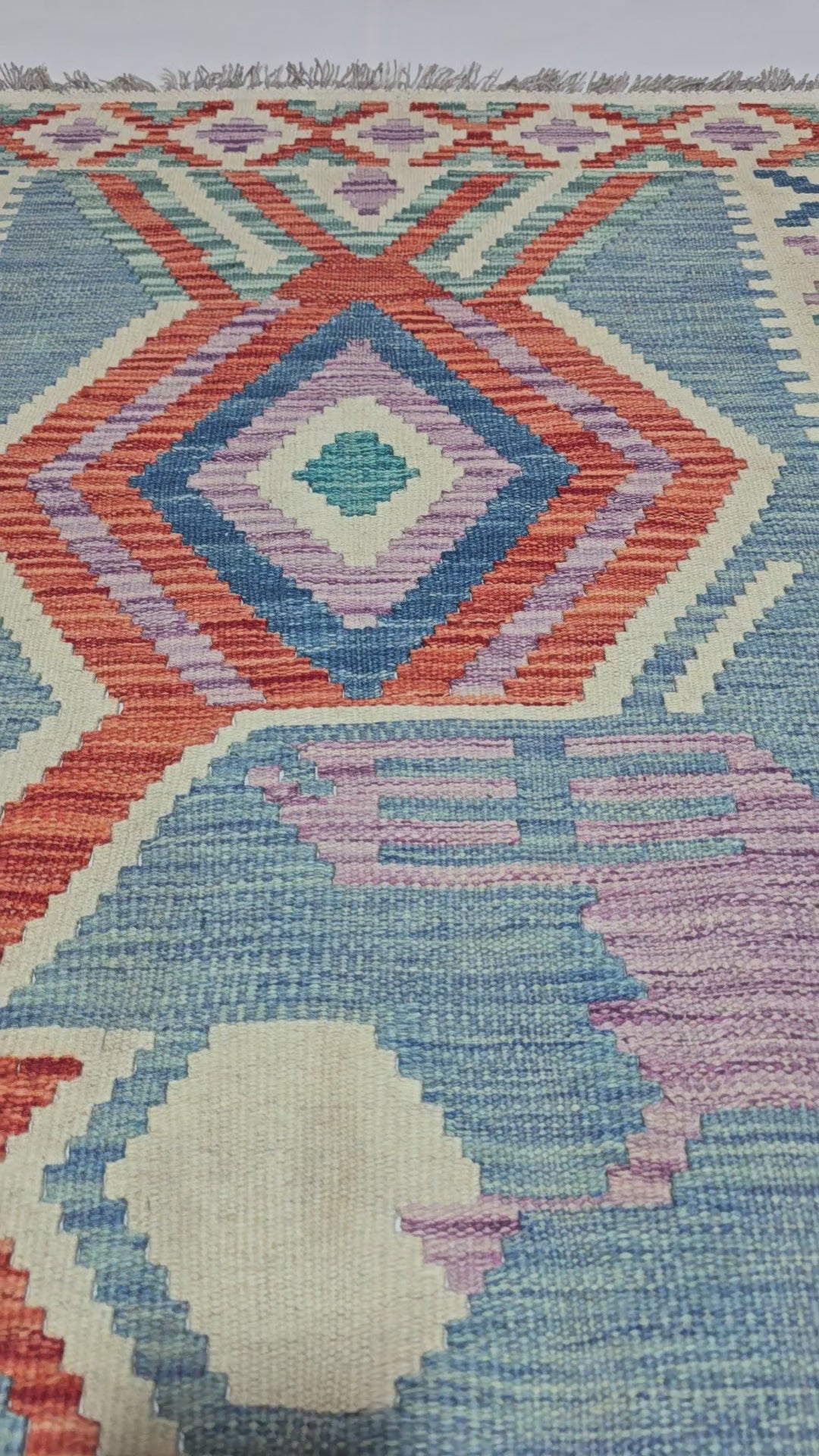 Deze traditionele, handgeweven kelim uit Afghanistan is met zorg door ons geselecteerd op zowel kwaliteit als design. Afghaanse kelims staan bekend om hun levendige kleuren, verfijnde patronen en hoge kwaliteit. Elk vloerkleed wordt met de hand vervaardigd door ervaren ambachtslieden, die eeuwenoude weeftechnieken van generatie op generatie doorgeven. Breng warmte, karakter en cultuur in je interieur met deze authentieke en tijdloze kelim.