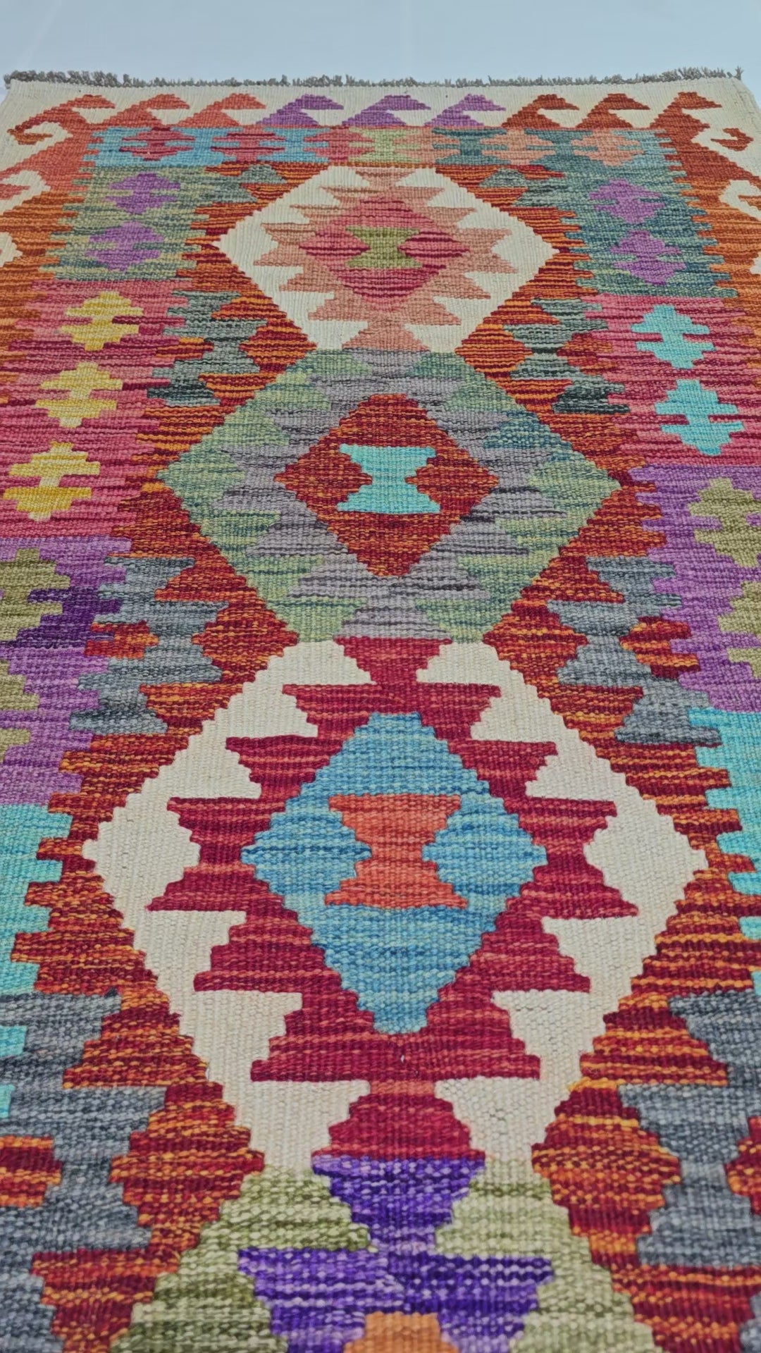 Erlebe die reiche Kultur Afghanistans und ihre beeindruckende Handwerkskunst mit einem traditionellen Kelim Teppich. Dieser Teppich bringt Farbe, Wärme und Struktur in dein Zuhause. Wir wählen jedes Stück sorgfältig aus – so stellen wir sicher, dass jeder Kelim Teppich echte afghanische Handwerkskunst widerspiegelt. Mit kräftigen geometrischen Mustern, leuchtenden Farben und der traditionellen Schlitzwebtechnik bringt dieses flachgewebte Schmuckstück über 1.500 Jahre Geschichte in dein Zuhause.